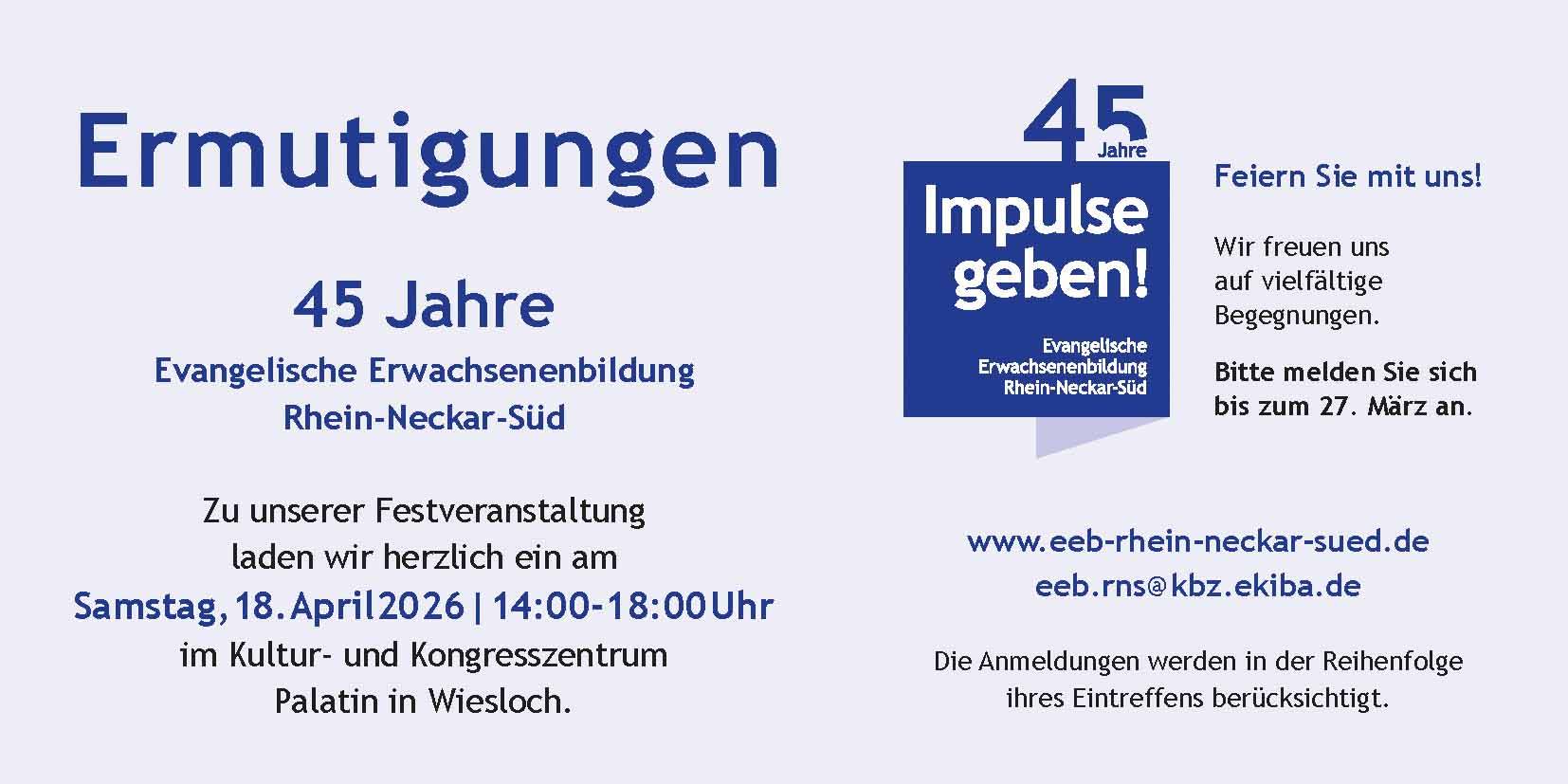 Die EEB Rhein-Neckar-Süd feiert ihr 45-jähriges Bestehen. Darauf freuen wir uns.